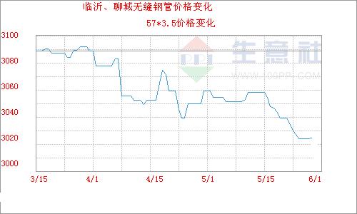 從上圖可以看出,自從3月中旬以來20#57*3.5價格一直處在下降趨勢,直到6月初才穩定,對臨沂管廠的打擊不小,最近5個月價格一路下行,跌幅為100元/噸不等。商家庫存多數控制在低位,多以出售庫存為主,對于部分規格少的則由管廠直接發貨,管廠連續下跌且后期仍有下跌態勢,商家為規避風險,訂貨積極性仍較差,市場行情低迷,訂單稀少,庫存消耗緩慢,因欠款客戶較多,資金力很大,商家心態悲觀。