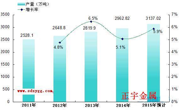 據(jù)正宇金屬統(tǒng)計,2010年無縫鋼管產(chǎn)能為2528.1萬噸,2012年為2648.8萬噸,較上一年增幅4.8%;2013年產(chǎn)能為2819.9萬噸,較上一年增幅6.5%;2014年產(chǎn)能2962.82萬噸,較上一年增幅5.1%;預(yù)計2015年產(chǎn)能將達(dá)到3137.02萬噸,較上一年增幅5.9%;如果今年產(chǎn)能超過預(yù)期,2015年增長幅度將超過2013年的6.5%,山東無縫鋼管廠產(chǎn)能將呈穩(wěn)定增長態(tài)勢,而需求端并沒有穩(wěn)定增長,存在諸多因素,終端需求量基本保持平穩(wěn),沒有出現(xiàn)忽高忽低走勢。