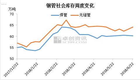 六月,鋼管的庫存水平呈小幅上升狀態,最根本原因在于6月鋼材需求的疲軟,導致庫存消化慢。